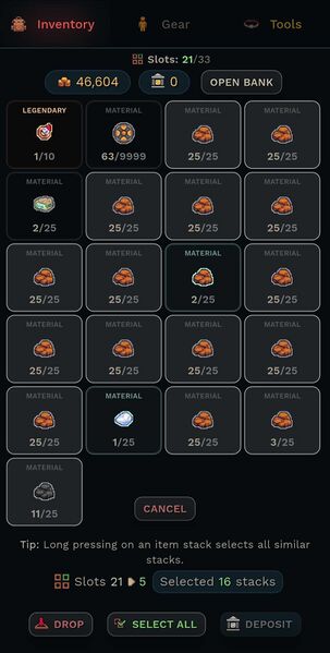 Multiple items selected in inventory